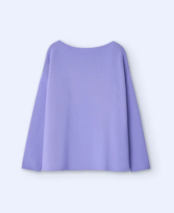 Pull En Mailles. Encolure Bateau. Manches Longues A Epaules Tombantes. Modele Fluide. Bas Droit. Logo Brode.
